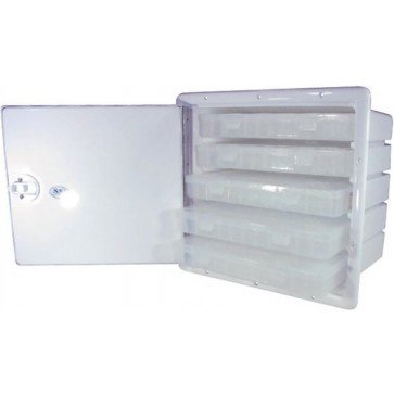 5 Drawer Lockable Tackle Storage Box is a recessed cabinet moulded in white, U.V. resistant ABS plastic Five large Plano lidded tackle drawers Fu...
